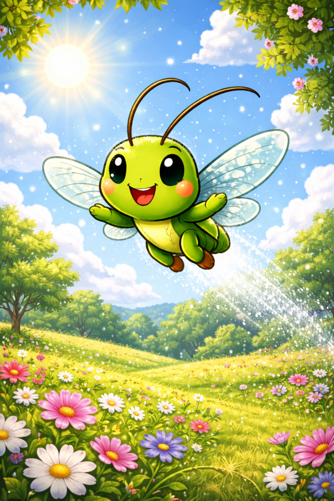 اما جیرجیرک گوش نداد، چون جیرجیرکها هر کاری که دلشان بخواهد انجام میدهند و تصمیم گرفت روی تودهای از شاخههای خشک استراحت کند. از تمام آن پروازهای فوقالعاده سریع و شیک، خوابآلودتر از همیشه شده بود.