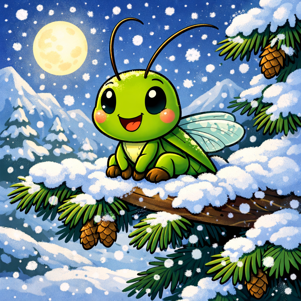با این حال، گوش نداد، چون جیرجیرکها هر کاری که دلشان بخواهد انجام میدهند و همان شب به سمت شمال راه افتاد. طولی نکشید که به آنجا رسید، چون او پرندهای فوقالعاده سریع و شیکپرواز بود.جیرجیرک درست زمانی که خورشید در حال غروب بود، کنار یک درخت کاج فرود آمد.